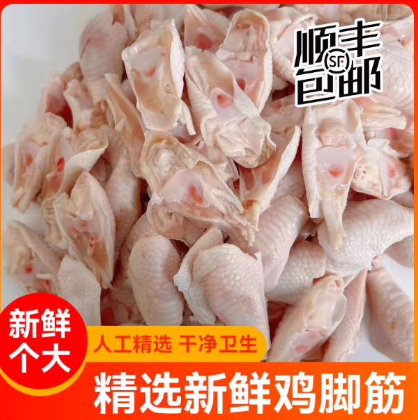 • 商品名称:新鲜冷冻鸡脚筋生鲜生鸡脚筋商用批发鸡脚筋生鲜整箱批发餐饮散养